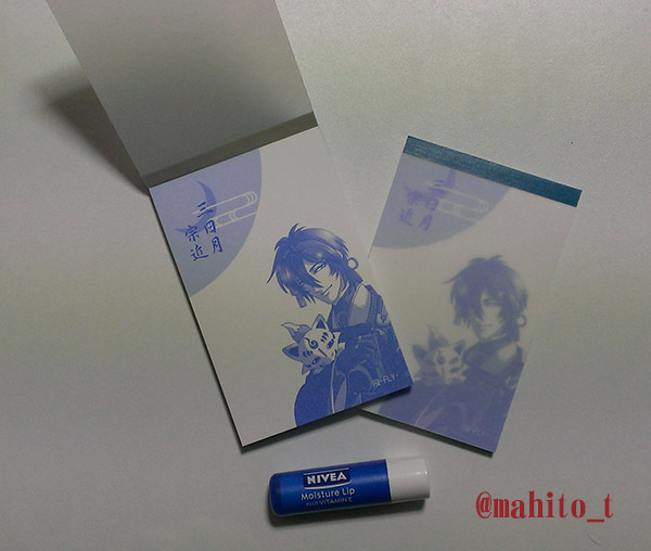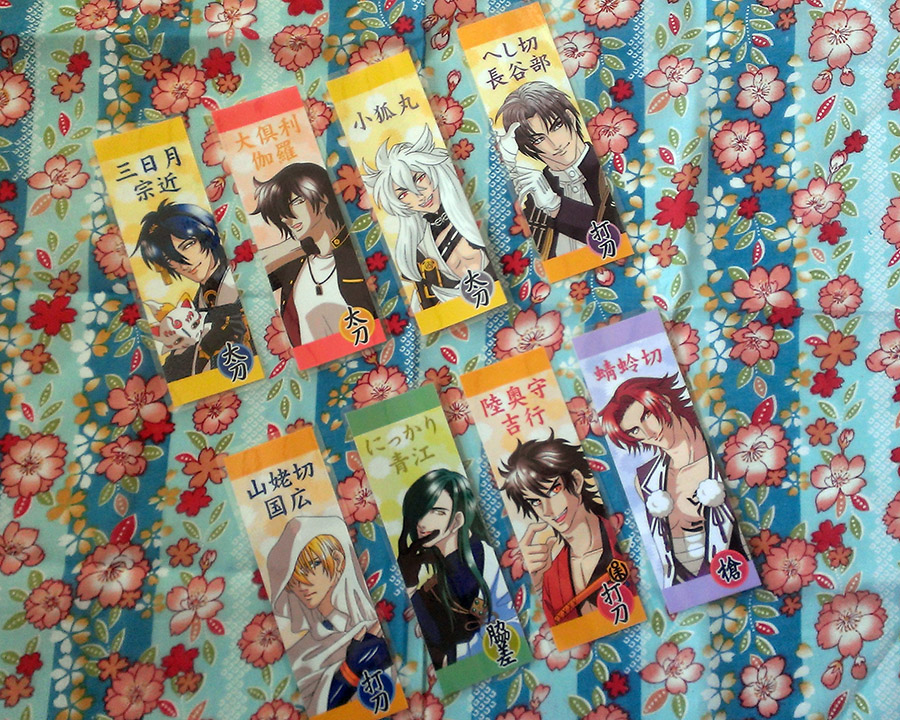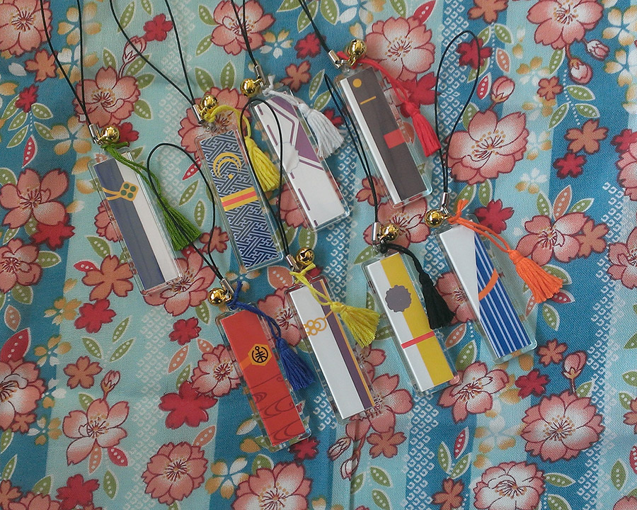 ラミカ・ストラップできたー! ラミカは2Ver.になりました。栞タイプです。 サイズ:45mm×140mmをラミネートしたもの。 2枚100円。①②組み合わせ自由。 ①キャラ絵Ver. ②衣装ディフォルメVer. ストラップ。400円。 サイズ:15mm×57mm(絵柄部分) 鈴と飾り房がついてます。 飾り房は一つずつ刺繍糸で手作りです。 缶バッジはNewCanバッチgood本体が不調なので、後日写真をアップロードします。 [0回]